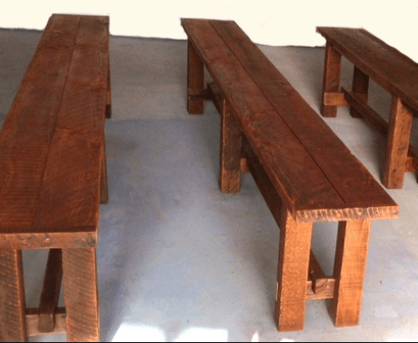 A rustic farm table seats 10. If needed, 12 can be seated by